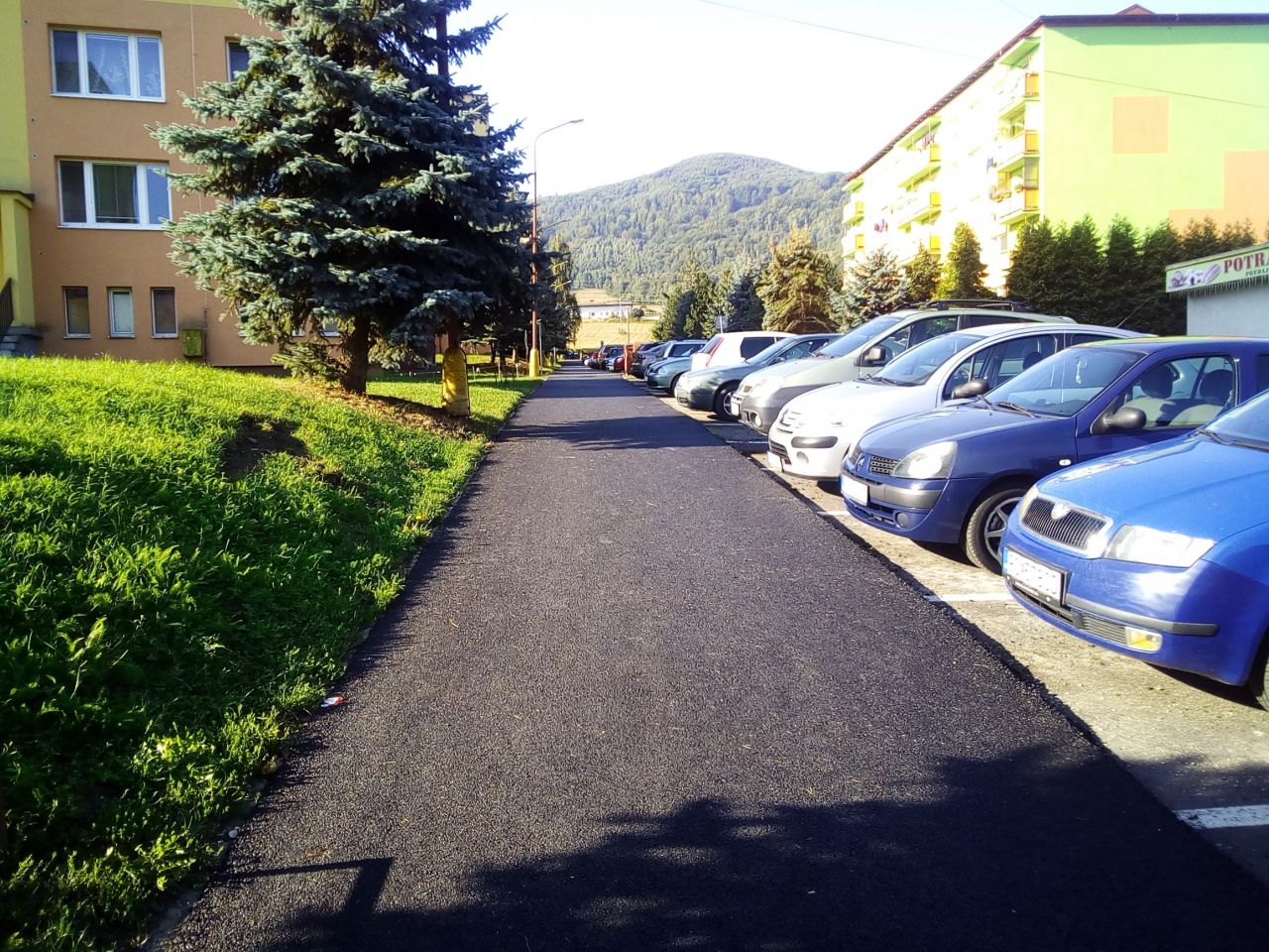 Asfaltovanie prebehlo podľa stanoveného harmonogramu na ul. Klokočovej – chodník pred bytovými domami č.732-737, na ul.Clementisovej – prístupové cesty pred bytovými domami č.194-196,214-217,na ul.Francisciho 731, chodník pred MŠ Klokočova a prepoj ciest na ul.Budovateľov. Vzhľadom na časovú tieseň nebolo možné zrealizovať chodník od Nemocnice po Likier, ako aj ďalšie pripravované prístupové cesty a chodníky, ktoré sa prevedú v jesennom období, resp. v ďalšom roku 2019.