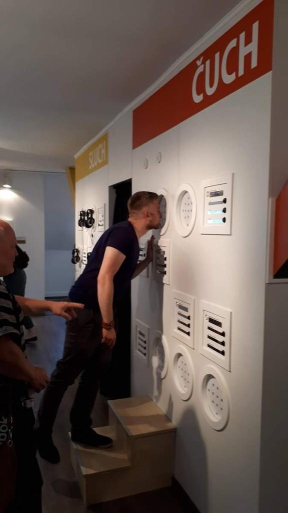 Deň sme začali v Slovenskej knižnici pre nevidiacich Mateja Hrebendu v Levoči, ktorá dlhodobo spolupracuje aj s našou Knižnicou prof. Štefana Pasiara. Tu sme sa zoznámili s tým, ako vznikajú knihy pre nevidiacich a ako čím ďalej, tým viac pomáhajú aj v tejto oblasti informačné technológie. Priložiť ku knihe mobil, ktorý vám cez kód prečíta stranu v knihe, pozrieť si ako sa tlačia knihy v Braillovom písme alebo na vlastné oči vidieť, ako nevidiaci kontrolujú knihy pred ich tlačou, bol naozaj zážitok. Ďalší sa pridal v izbe Mateja Hrebendu, kde sme objavili aj veľkú časť nášho regiónu i mesta a miestami sme ostávali v pomykove, prečo je jeho životný príbeh prezentovaný viac v iných kútoch Slovenska viac, ako v tom našom. Čerešničkou na torte bola návšteva Múzea špeciálneho školstva v Levoči, ktorá očarila takmer všetky naše zmysly, a to doslova. Moderné múzeum zariadené interaktívnymi prvkami, vďaka ktorým sme si mohli pozrieť nielen vzácne exponáty z histórie špeciálneho školstva, ale aj vyskúšať si aktivity, ktoré hravým spôsobom prinútia človeka uvedomiť si, že zdravé oči alebo uši nie sú samozrejmosťou.