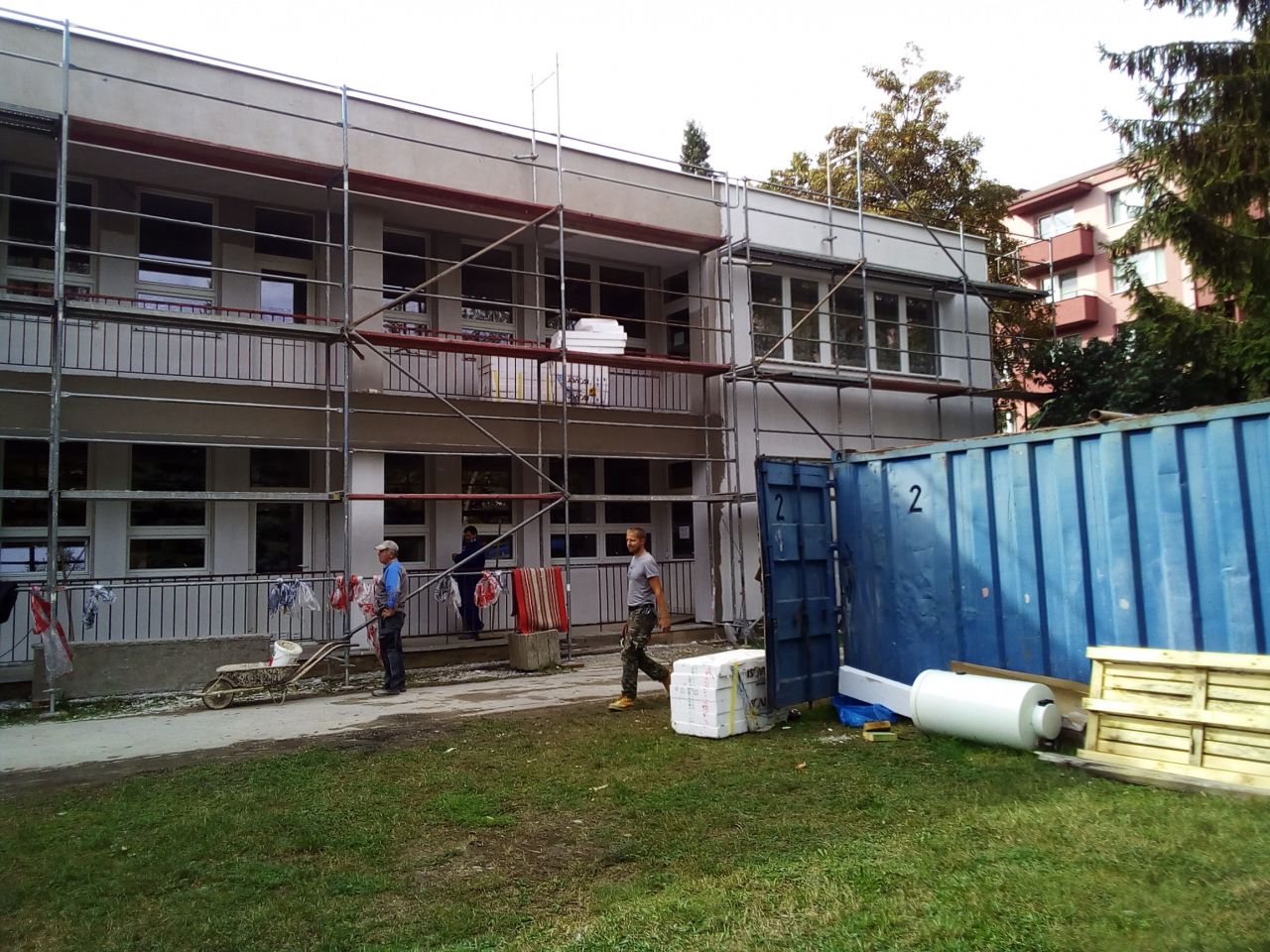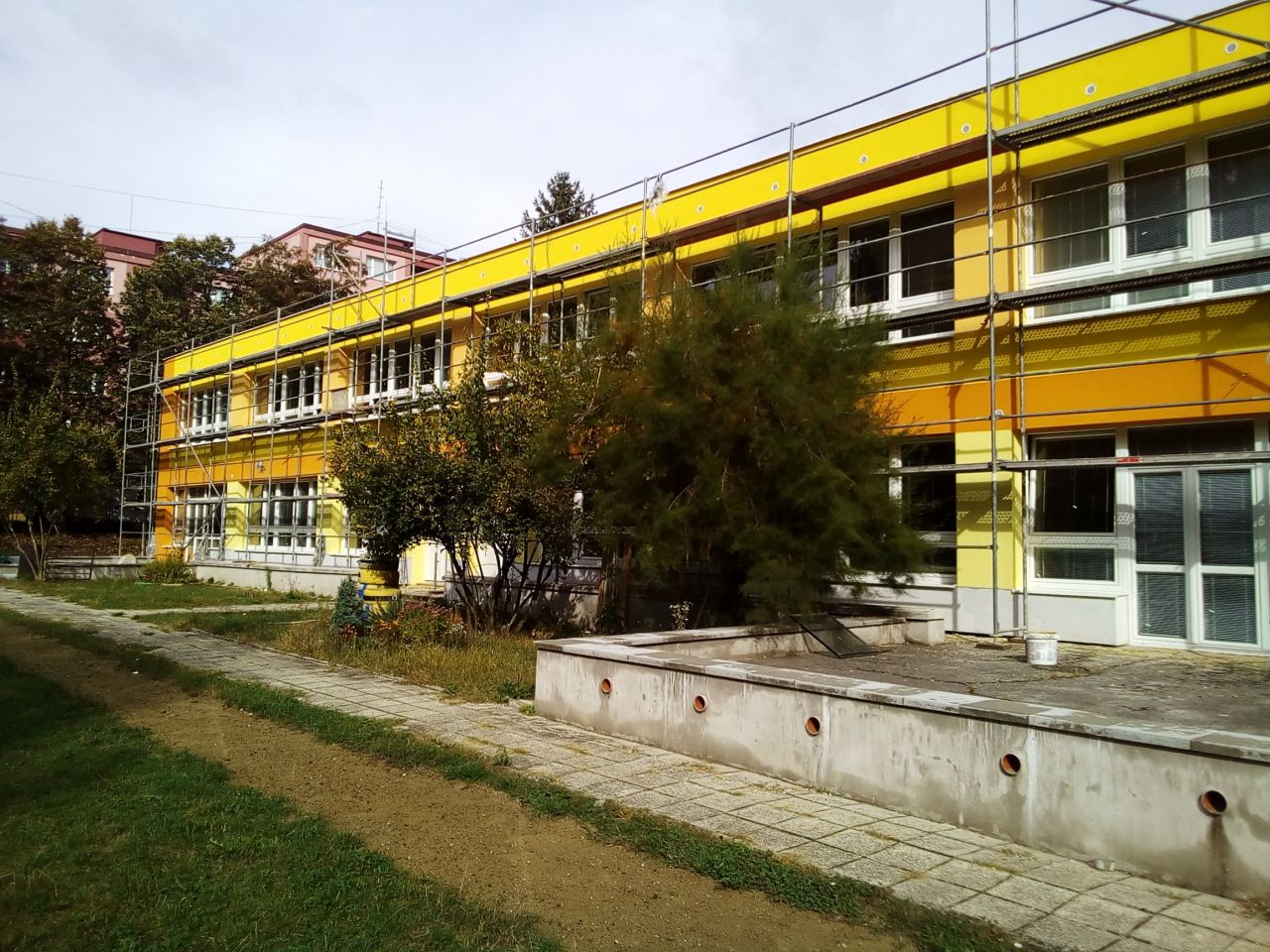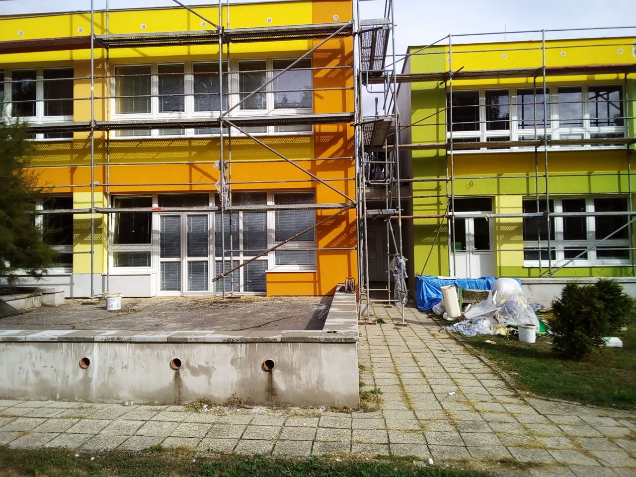 Aj v tomto jesennom období pokračujú stavebné práce na obnove Materskej školy na Nábreží Rimavy v Hnúšti. Po kompletnej výmene okien a dverí prebieha zateplenie fasády a strechy.V niektorých častiach už aj s konečnou úpravou a farebným prevedením/ viď.foto /. Nakoľko materská škola je v plnej prevádzke ďakujeme hlavne rodičom za trpezlivosť pri vstupoch do budovy a spoluobčanom v okolí za obmedzenie stavebnou činnosťou.