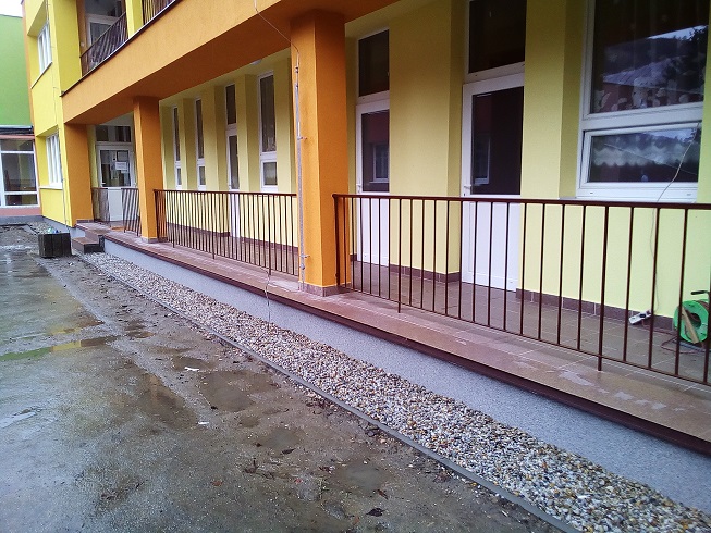 V súčasnej dobe finišujú stavebné práce na rekonštrukcii Materskej školy Nábrežie Rimavy. Prebiehajú dokončovacie práce na terasách, povrchová úprava sokľov, úprava terénu okolia. Práce prebiehajú podľa harmonogramu a v blízkej budúcnosti budú práce ukončené. Prevedie sa aj odvodnenie chodníka pred triedami 5 a 6, kde dlhé roky počas dažďov stála voda. Ďakujeme rodičom sa zhovievavosť počas prác.