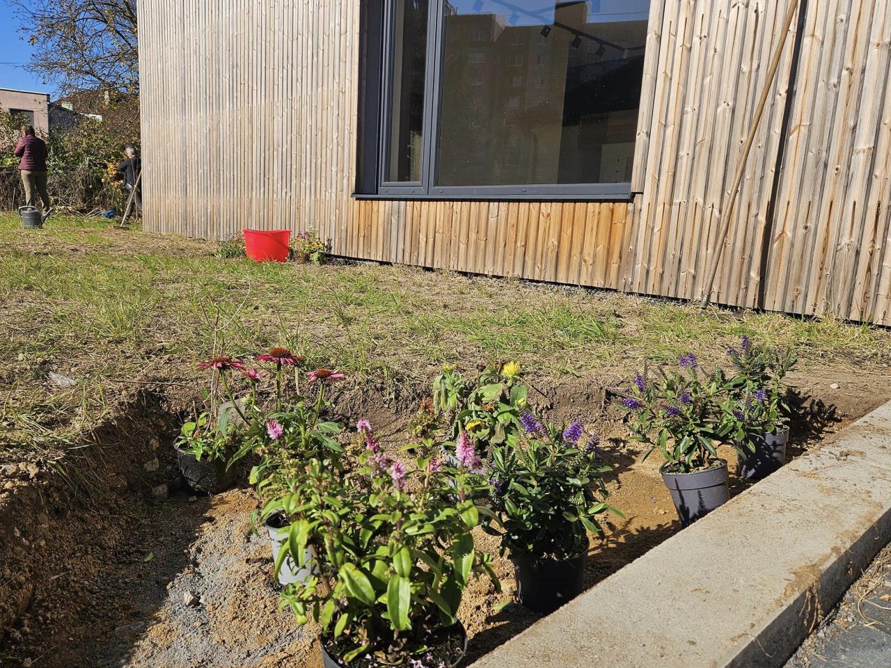Vysadené boli rôzne druhy záhonov, či už, kvetinové alebo ovocné. Vysadené boli ovocné stromy. Celý projekt záhrady je dotvorený detailmi ako je hotel pre hmyz, betónové nášľapné plochy v trávniku, ktoré budú tvoriť chodník a v neposlednom rade vyvýšená drevená plocha určená na sedenie na sedacích vakoch.