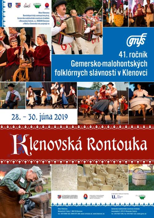 Gemersko – malohontské folklórne slávnosti, pod názvom Klenovská Rontouka, opäť po roku pozývajú všetkých milovníkov tradičnej ľudovej kultúry, na svoj 41. ročník. Organizátori Obec Klenovec, Gemersko – malohontské osvetové stredisko v Rimavskej Sobote, Banskobystrický samosprávny kraj, Občianske združenie RODON Klenovec, Matica Slovenská a celý autorský tím Vám ponúkajú jedinečnú skladbu scénických, ale aj sprievodných podujatí.