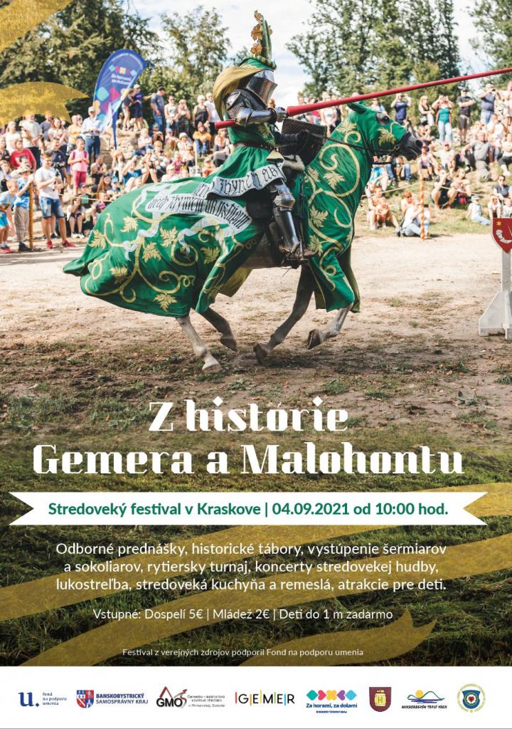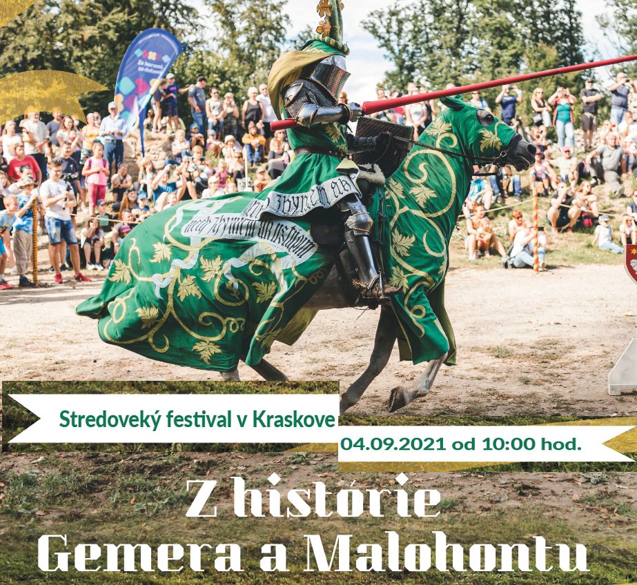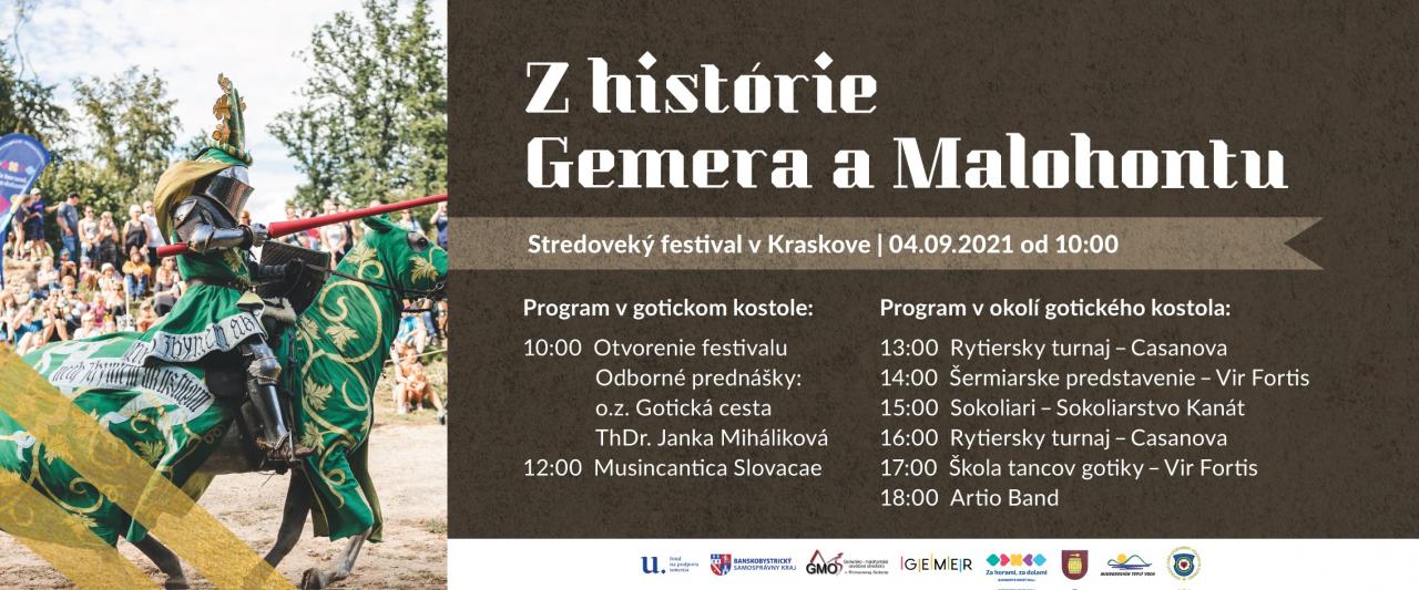 Program historického festivalu začne od 10 – tej hodiny v gotickom kostole v Kraskove, a to odbornými prednáškami o Gotickej ceste. Sprevádzať budú lektori ThDr. Janka Mihaliková, zborová farárka ECAV z Rimavského Brezova a Mgr. Peter Palgut z o. z. Gotická cesta. Od 12-tej hodiny bude prebiehať koncert stredovekej hudby a výstava gotických hudobných nástrojov v podaní zoskupenia Musicantica Slovaca z Nitry. V okolí gotického kostola bude od 13-tej hodiny rytiersky turnaj spolku Cassanova, od 14-tej hodiny spolok Vir Fortis uvedie šermiarske predstavenie. Od 15-tej hodiny sa predstavia so svojimi dravcami Sokoliarstvo Kanát. Od 16-tej hodiny opäť spolok Cassanova predstaví rytiersky turnaj. V podaní spolku Vir Fortis od 17-tej hodiny bude prebiehať Škola tancov gotiky. Podujatie svojim koncertom ukončí od 18-tej hodiny hudobná skupina Artio Band.