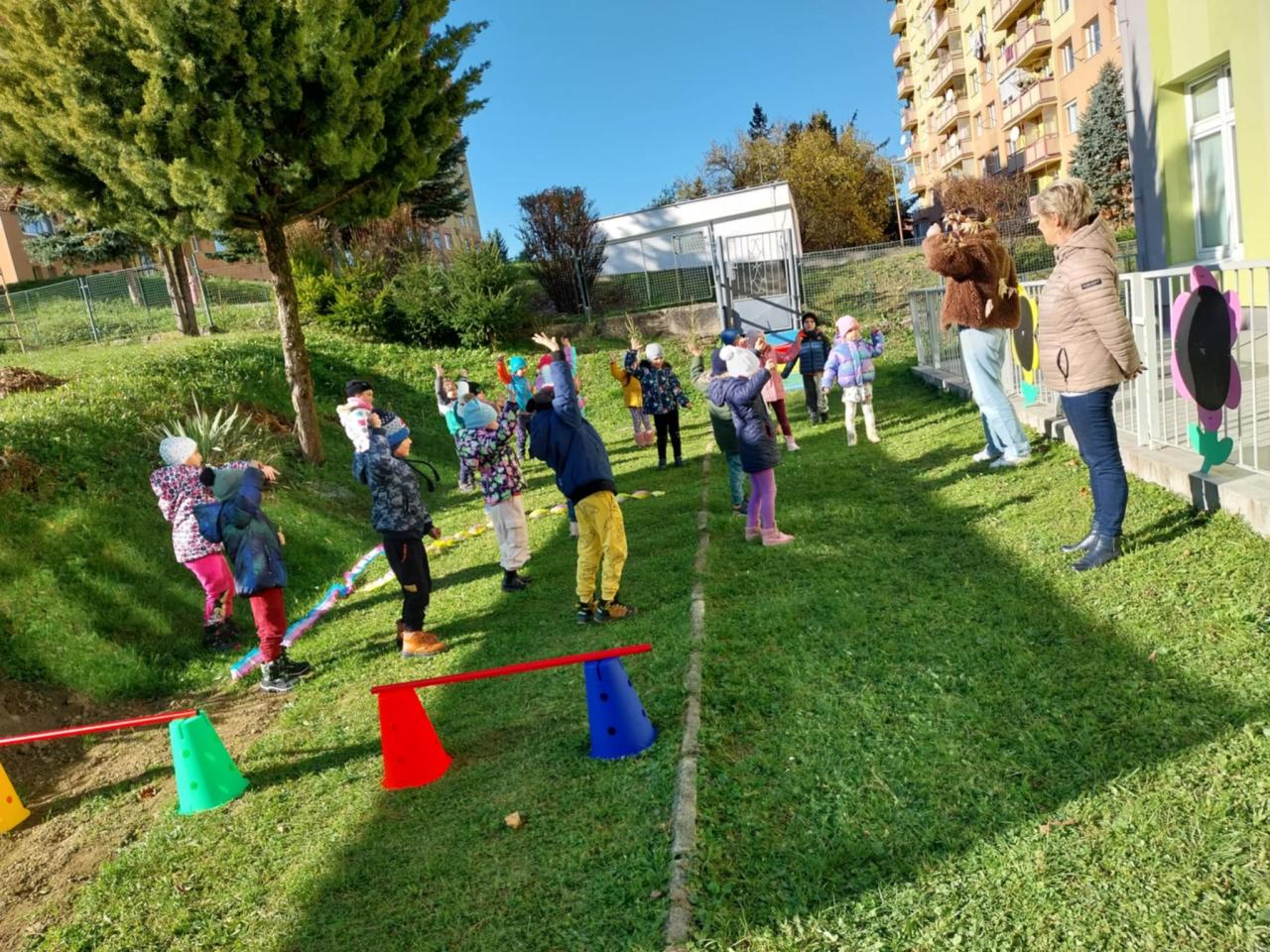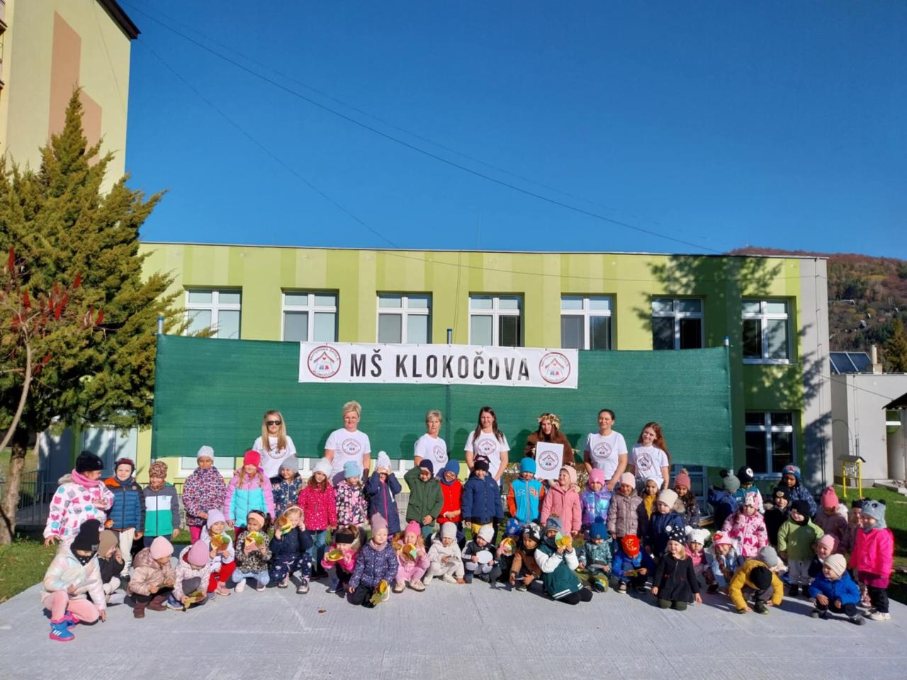 Každoročne v našej materskej škole Klokočova 741/25 tento deň oslavujeme aj my. Malé, stredné a veľké deti plnili v školskej záhrade športové aktivity, kreatívne tvorili s prírodninami, hrali sa na Pátračov, ktorí pátrali po farebných listoch a následne ich priraďovali k farebnému pozadiu, obkresľovali svoje ruky pod logo MŠ, podpísali sa menom a v neposlednom rade tancovali v sprievode hymny Dňa materských škôl. Aktivitami deti sprevádzala pomocníčka pani Jesene.