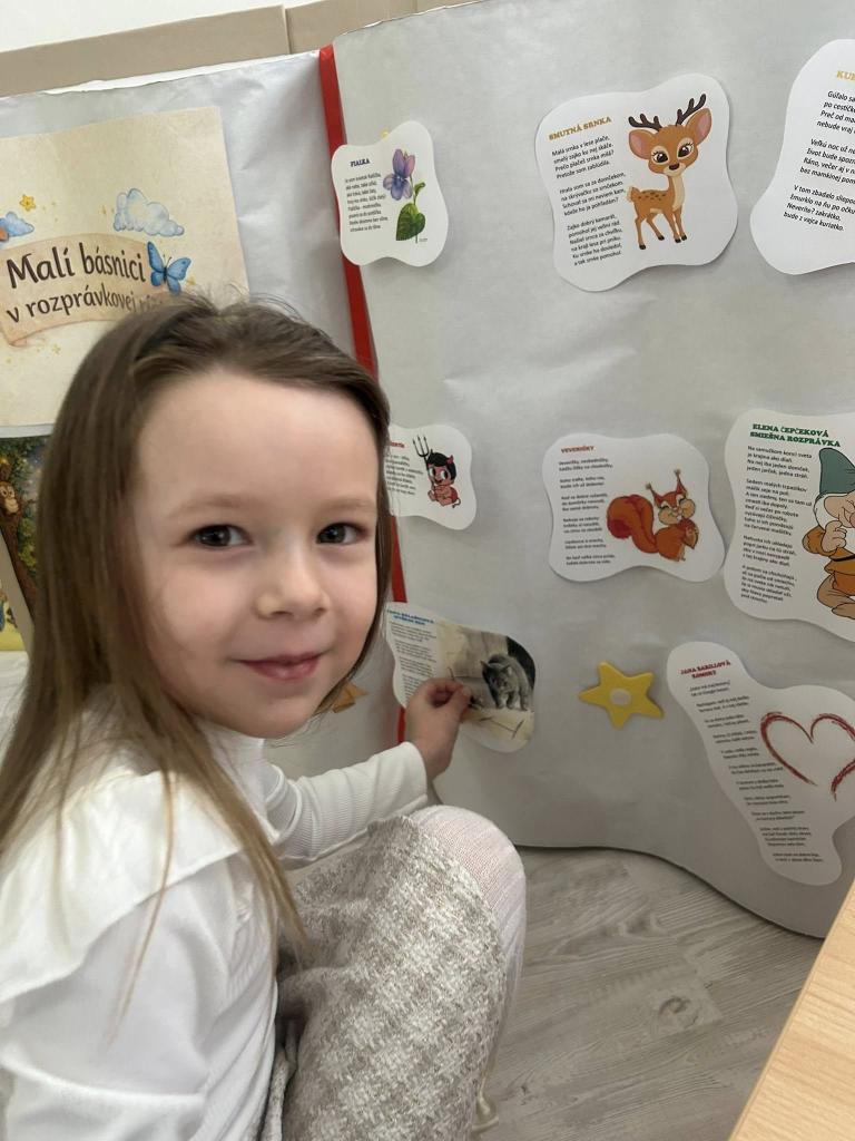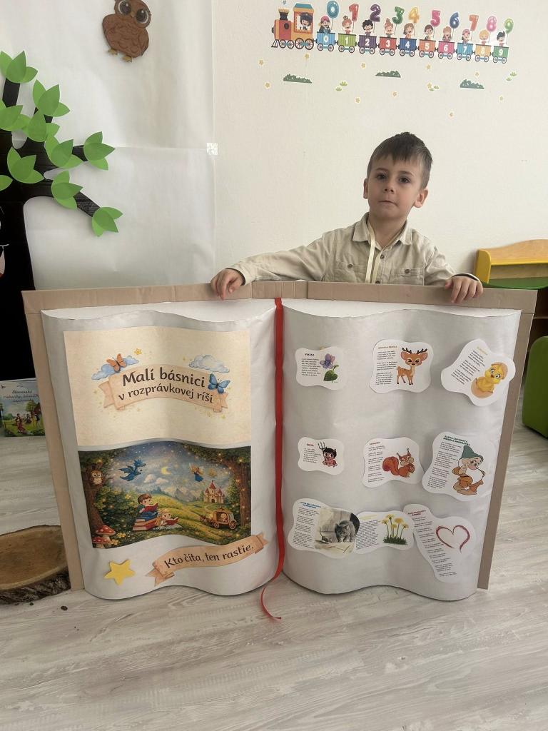 Na začiatku nás čakala veľká rozprávková kniha, ktorá bola však prázdna...bez básničiek, no práve naši malí básnici jej vdýchli život. S odvahou a radosťou predstúpili pred svojich kamarátov a pani učiteľky a svojimi krásnymi básničkami ju postupne zapĺňali.