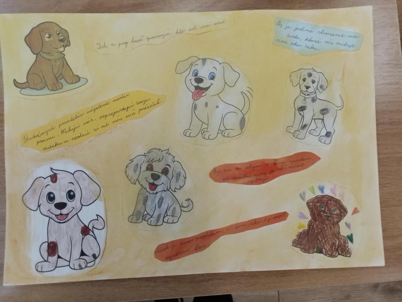 Žiaci k tomu vytvorili aj farebný plagát, ktorým chceli psíkom vyjadriť svoju radosť a podporu.