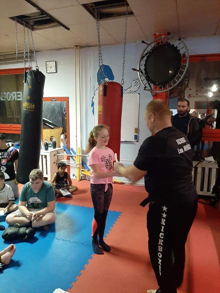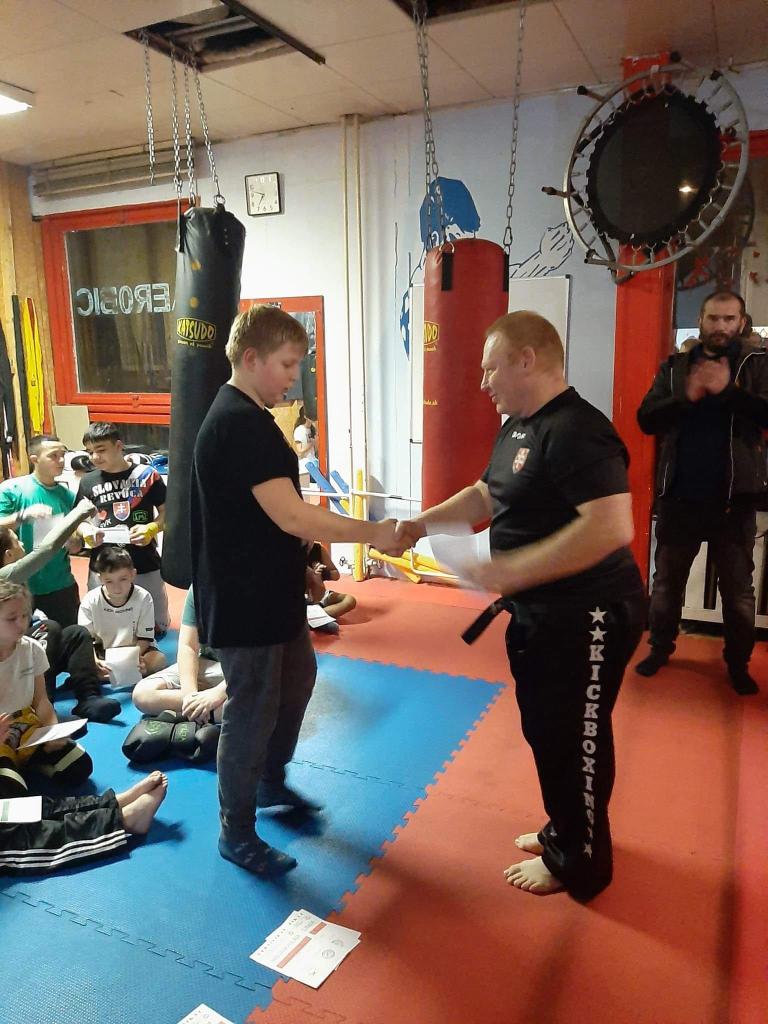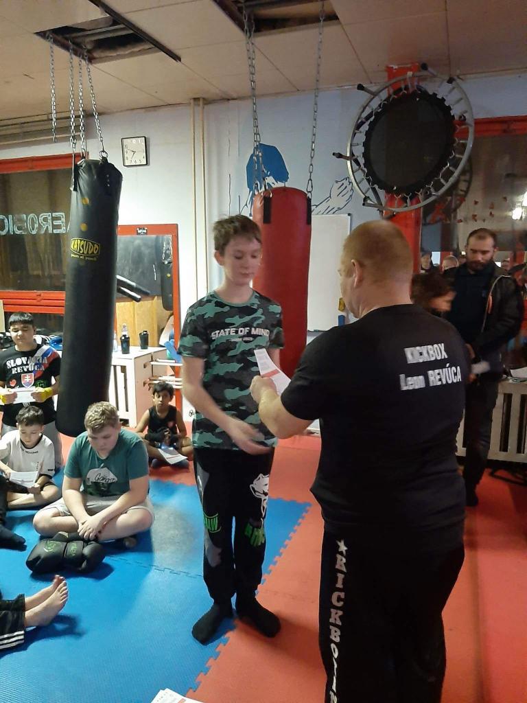 Mgr. Bodor – tréner klubu Kick-Box Leon Revúca, ktorý je jedným z 3 skúšobných komisárov na Slovensku, preveril cvičencov poriadne po každej stránke. Museli ovládať nielen údery a kopy /techniky/, ale poriadne preveril hlavne ich kondičku. Skúšobný komisár im zadarmo nič nedaroval.