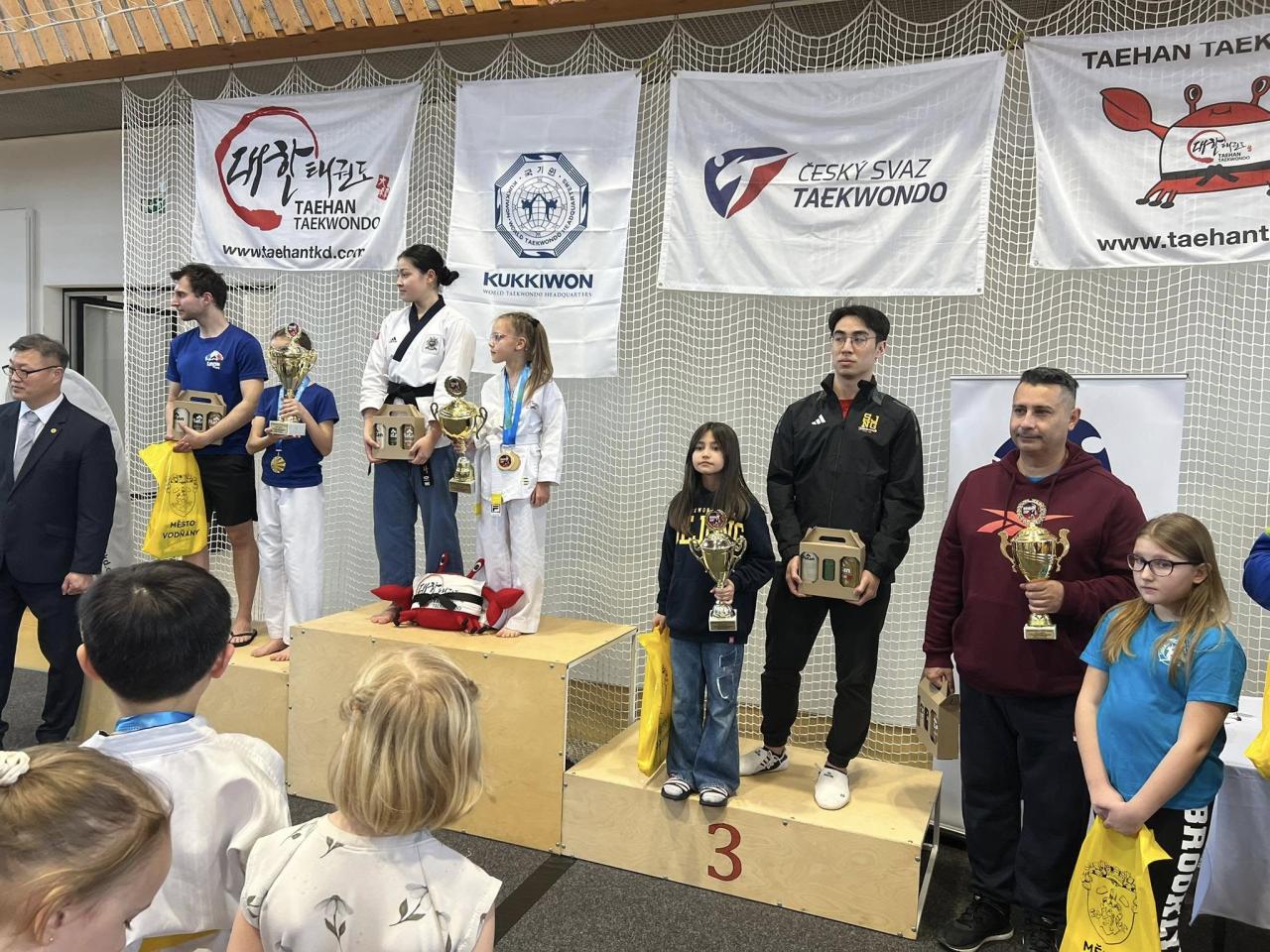 Svoju premiéru v Česku dobre naštartovala aj naša najmladšia účastníčka Lia Czeneová v kategórii žiaci , ktorá si v početnej skupine až 19tich súperiek zabezpečila postup do finálovej osmičky , kde sa jej podarilo vybojovať v silnej konkurencii celkovo krásne 5. miesto. Ďalšími nasadenými želiezkami v ohni boli súťažiaci, ktorí vybojovali cenné umiestnenia a priniesli výborný výsledok pre Taekwondo klub Hnúšťa s bilanciou 4 x zlato a 2 x striebro, ktorá priniesla víťazný pohár - v podobe 4. miesta z 12 konkurenčných klubov.