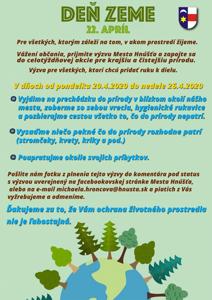 Vážení občania, prijmite výzvu Mesta Hnúšťa a zapojte sa do celotýždňovej akcie pre krajšiu a čistejšiu prírodu.