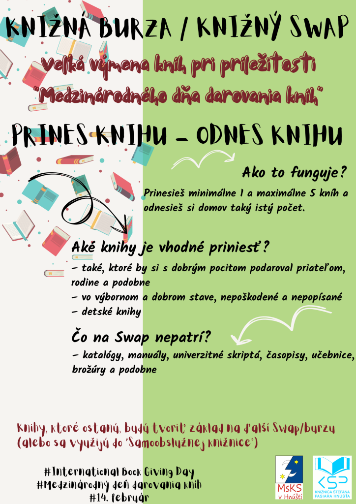 Valentín nie je len o čokoláde, romantike, ale aj o láske k príbehom. Pri príležitosti MEDZINÁRODNÉHO DŇA DAROVANIA KNÍH vás srdečne pozývame na náš obľúbený KNIŽNÝ SWAP – KNIŽNÚ BURZU.