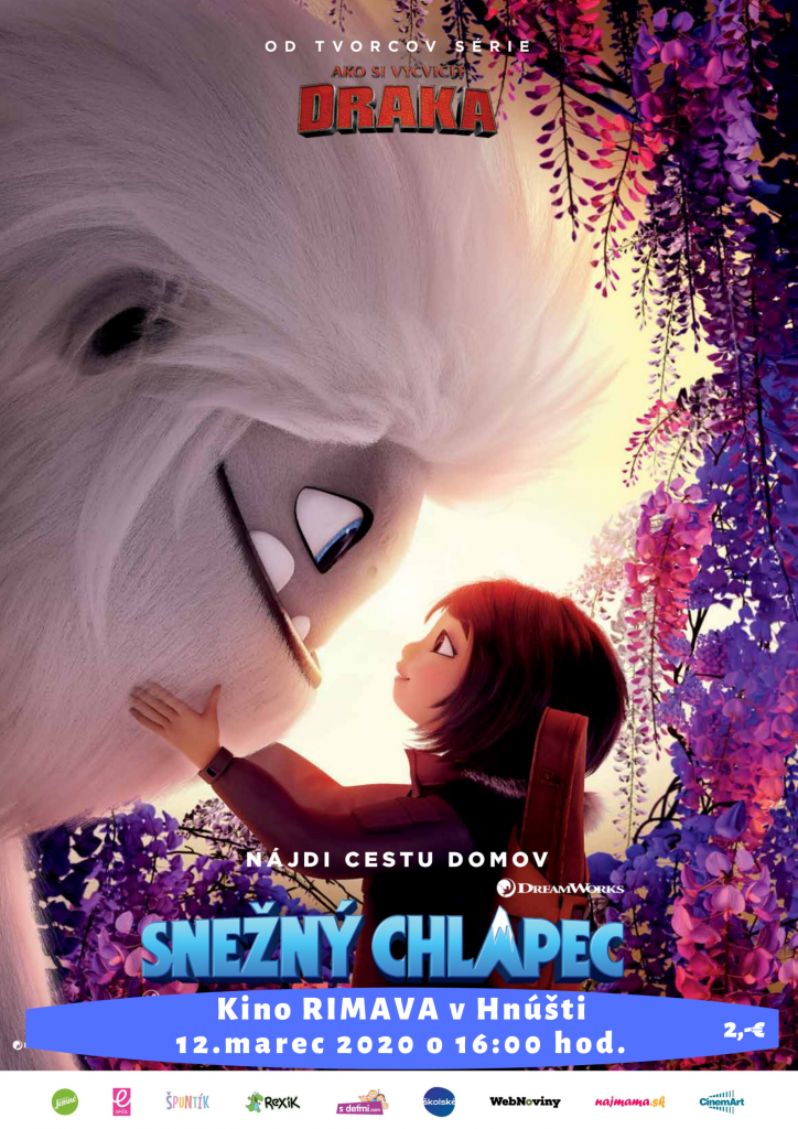 Chcete zažiť parádne dobrodružstvo ? Ak áno, tak sa choďte pozrieť na strechu vášho domu. Možno sa tam skrýva stratený a vydesený yetti, ktorý nevie, ako sa vrátiť späť k rodičom. Mladá puberťáčka Yi sa odvážne rozhodne sprevádzať snežného chlapca domov. Odmenou im bude napínavá cesta plná zábavy, dobrodružstva a zázrakov, vedúcich až na najvyššie miesto na Zemi. Chcete vedieť, ako tento príbeh dopadne? Dozviete sa to v Kine Rimava vo štvrtok, 12.marca o 16-tej hodine v kinosále MsKS v Hnúšti. Vstupné 2,-€.