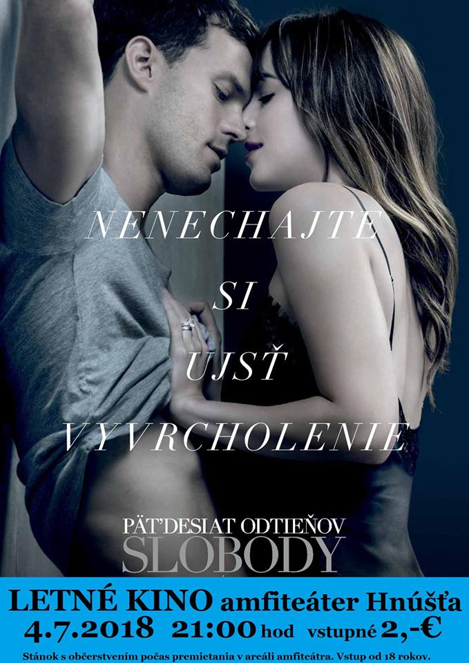 Letné kino v Hnúšti vás srdečne pozýva na premietanie fenoménu Päťdesiat odtieňov, ktorý vstupuje do tretej, záverečnej fázy s názvom 50 odtieňov slobody.