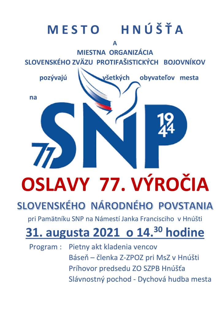 MESTO HNÚŠŤA, MIESTNA ORGANIZÁCIA SLOVENSKÉHO ZVÄZU PROTIFAŠTISTICKÝCH BOJOVNÍKOV a DYCHOVÁ HUDBA mesta Hnúšťa vás pozývajú na oslavy 77.výročia SLOVENSKÉHO NÁRODNÉHO POVSTANIA.