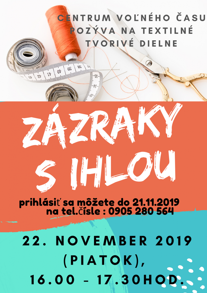 Centrum voľného času v Hnúšti Vás pozýva na tvorivé dielne Zázraky s ihlou, ktoré sa uskutočnia 22.novembra 2019 od 16.00 hod.