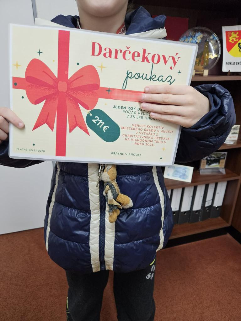 Výťažok z predaja v celkovej sume 211 eur sa zamestnanci mestského úradu rozhodli venovať tým, ktorí pomoc skutočne potrebujú. V spolupráci so Základnou školou J. F. Rimavského bola celá suma určená na zabezpečenie „desiaty zadarmo“ počas celého roka pre jedného zo žiakov školy. Cieľom tohto rozhodnutia bolo pomôcť rodine v neľahkej životnej situácii a zároveň dopriať šikovnému žiakovi pravidelnú, zdravú desiatu bez starostí.