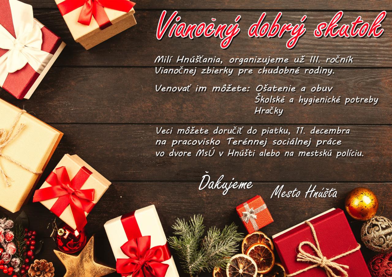 Vaše nepotrebné ošatenie, obuv školské a hygienické potreby a hračky môžete priniesť od pondelka 30. novembra do piatku 11. decembra 2020 na pracovisko Terénnej sociálnej práce, alebo na Mestskú políciu.