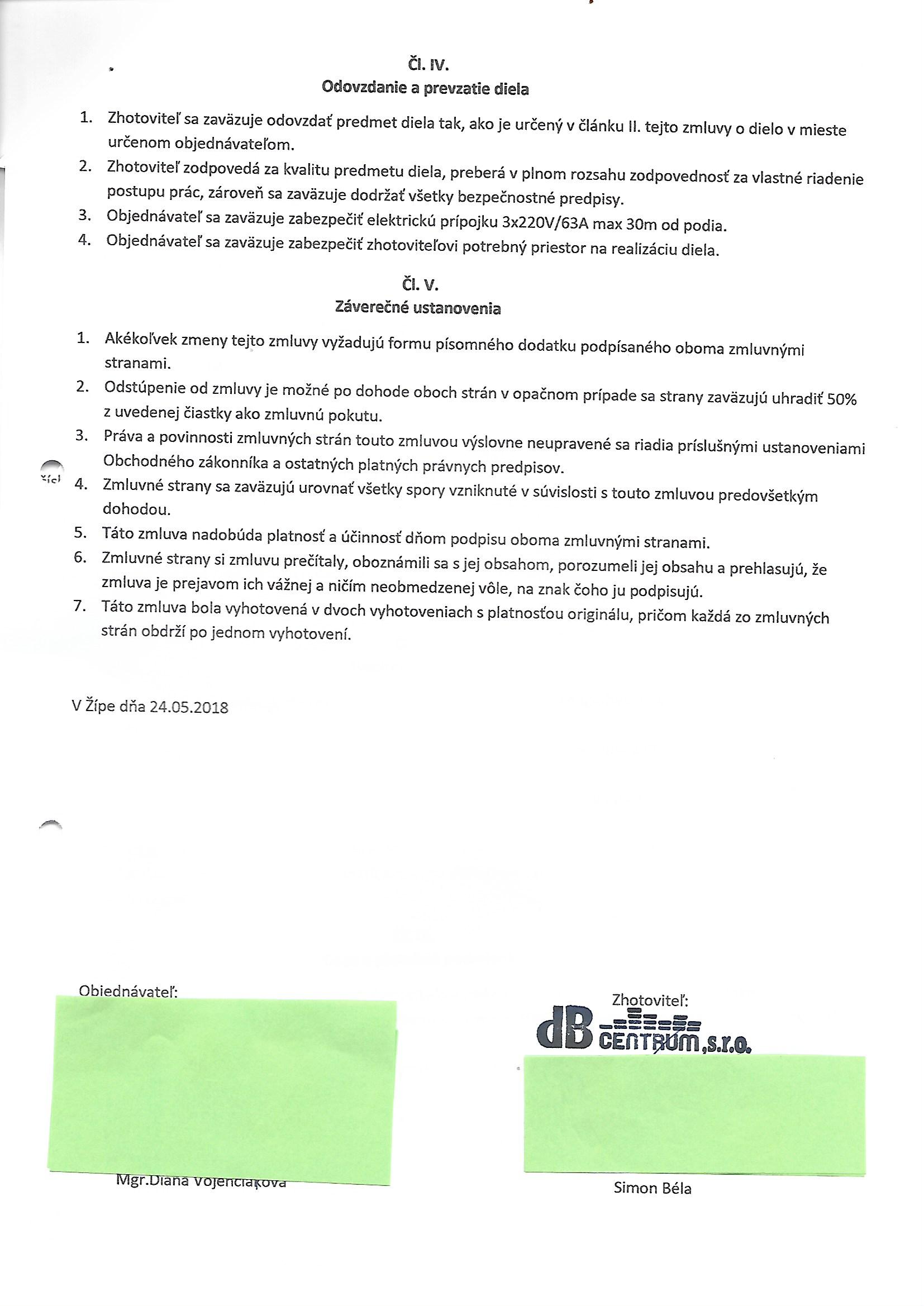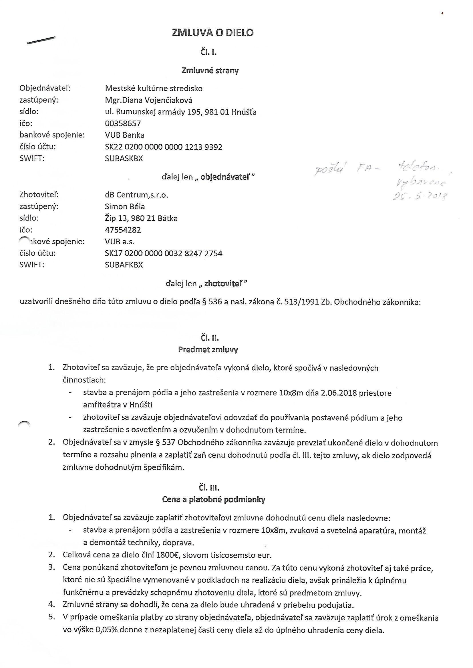 - Predmet zmluvy- prenájom pódia, osvetlenie a ozvučenie vystúpení - Dni mesta Hnúšťa 2018