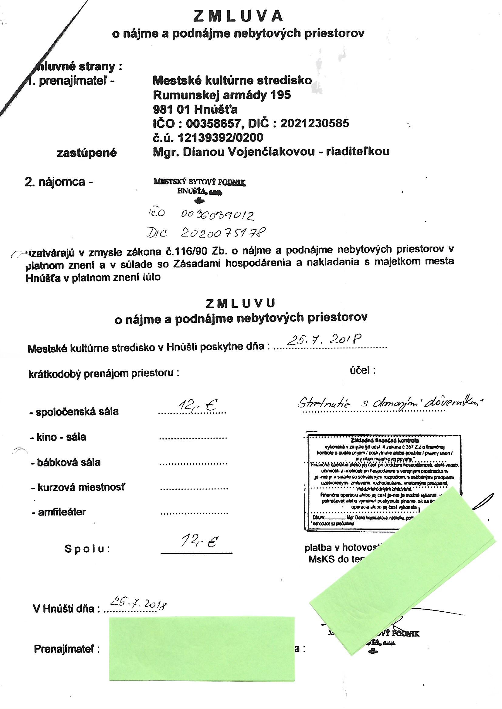 - 1. Zmluvná stranaMestské kultúrne stredisko v Hnúšti